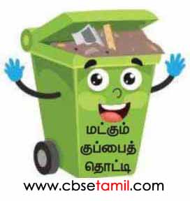 (கண்ணாடித்துண்டு, நெகிழிப்பை, காகிதத்தாள், சணல்பை, பீங்கான் தட்டு, இலை)
